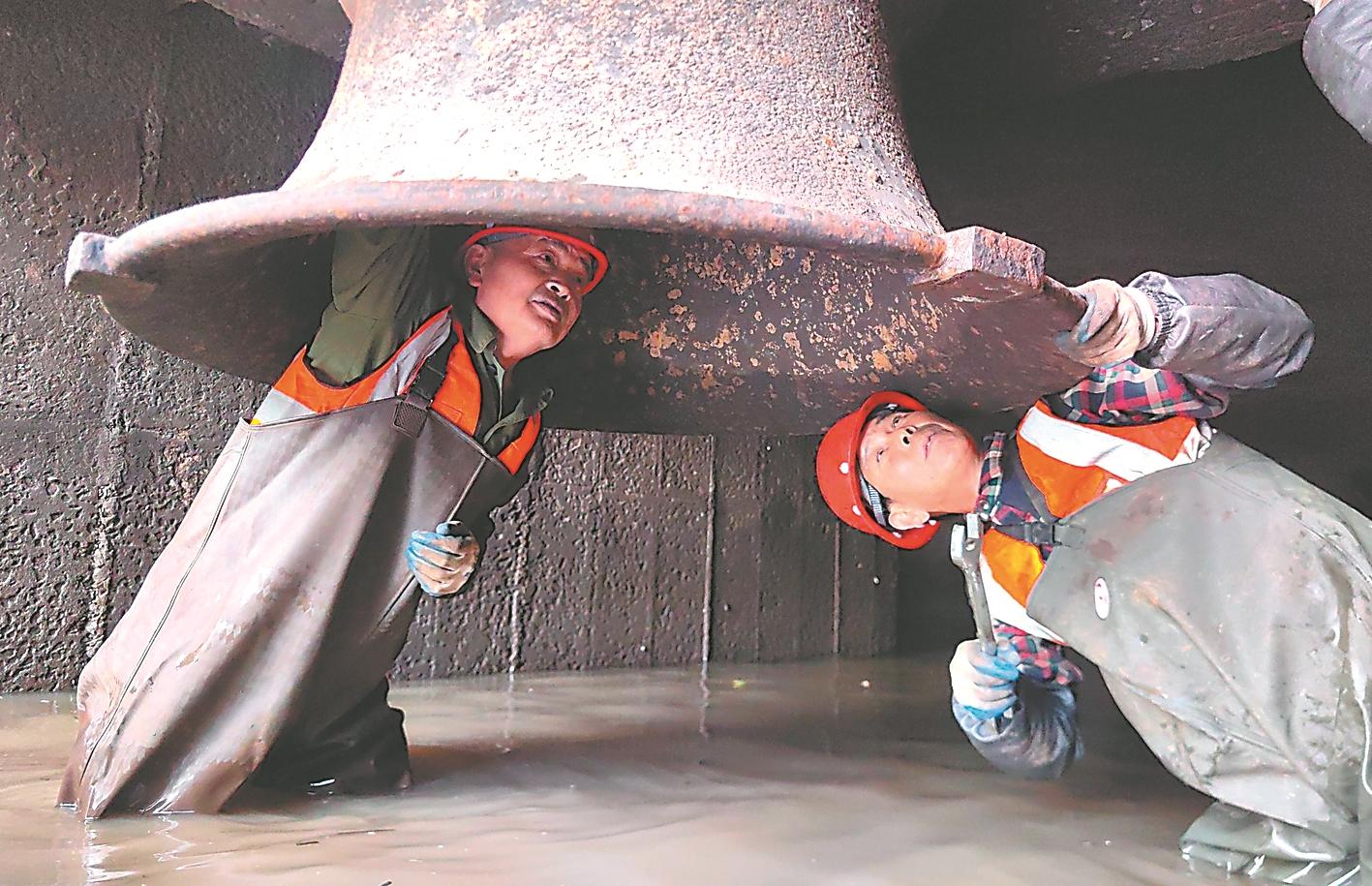 近日,颍上县陶坝孜排灌站技术人员对3号机组进行检修。连日来,颍上县水利局组织工程技术人员对所属国有泵站的机组、穿堤涵洞等进行全面检修保养,确保设备安全运行。 通讯员 王林洪 摄
