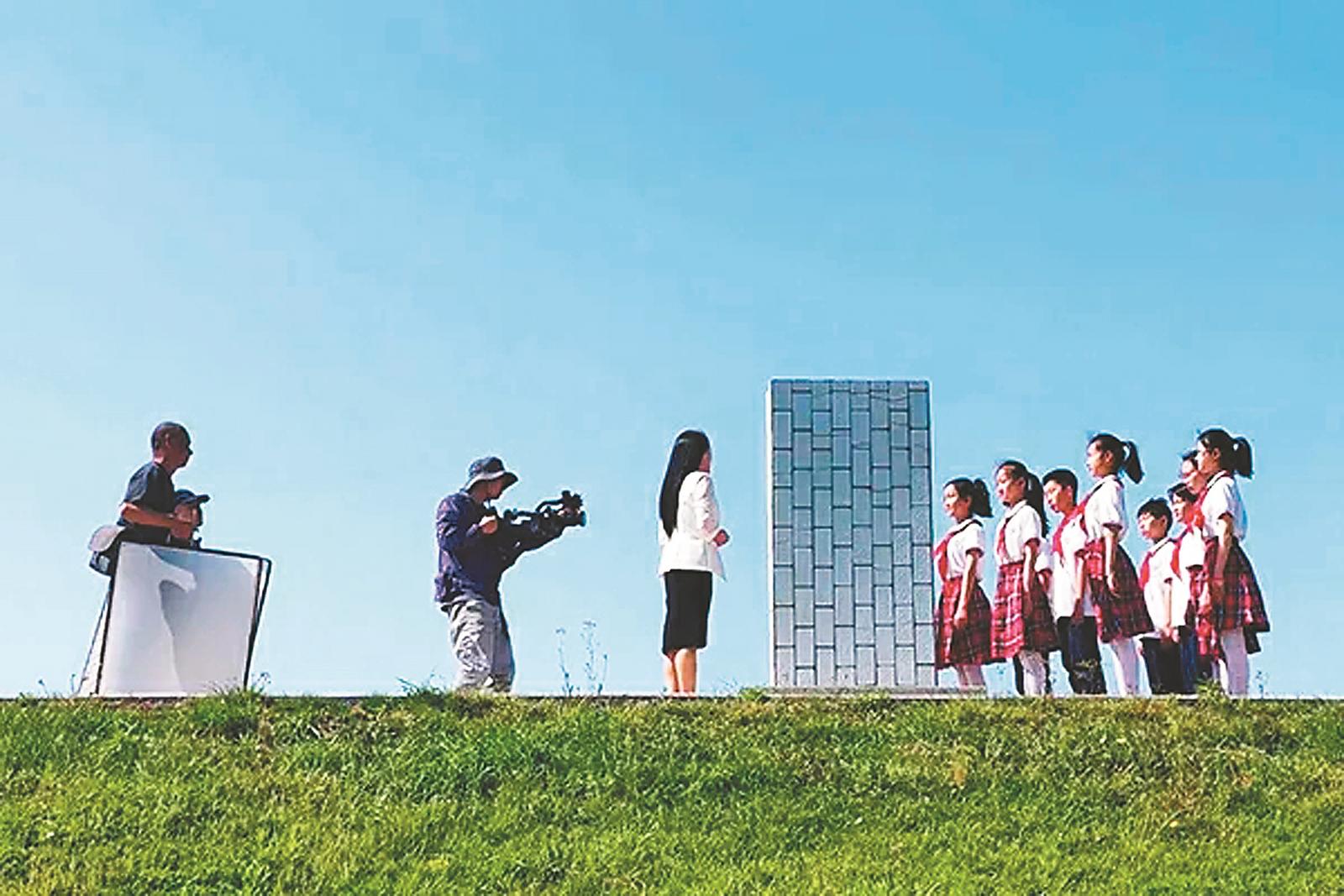 无为市委组织部在惠生堤组织拍摄党员教育片。无为市委组织部供图