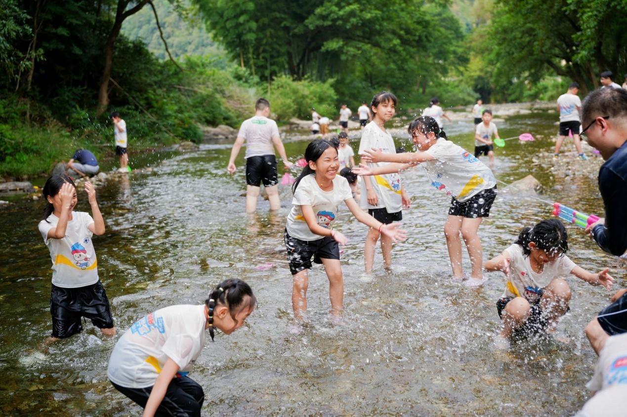 溯溪探险环节中,专业户外教练团队全程护航,孩子们在清凉溪流中学习生态保护知识,水花闪耀,欢乐升腾,童年在此刻化作不落幕的剧场。