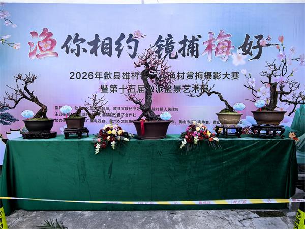 梅香载艺,古韵新生。此次赏梅摄影大赛与徽派盆景艺术展,早已超越单纯的活动范畴——它以梅为媒、以艺为桥,既为八方游人、摄影爱好者搭建了赏梅韵、抒情怀、促交流的广阔平台,更让徽派盆景这一千年非遗技艺走出深巷、活态传承,让卖花渔村的古村底蕴与文旅魅力被更多人发现。据悉,摄影大赛作品征集将持续至梅花展览落幕,届时优秀作品将集中亮相,以镜头为笔、以光影为墨,定格徽州古村的春日盛景与非遗雅韵,为歙县乡村文旅高质量发展注入持久活力,让千年徽州的文旅文脉在梅香中绵延不息、焕发新彩。(吴勇 许婉婉)
