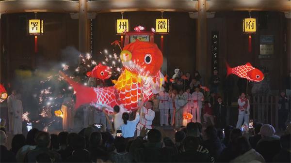 明嘉靖《徽州府志》卷二之三《风俗志》记载:元夕,歙有灯市,夕鱼负光,夜龙衔烛,以达于旦。“鱼负光”“龙衔烛”,何等阵仗,多么喧闹。