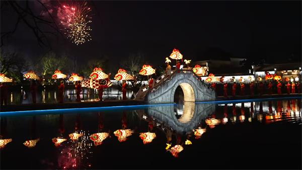 春节假期,在黟县千年古村落宏村,花灯舞起来,祈福马年风调雨顺、国泰民安,也给市民和游客献上了一场兼具年味与底蕴的民俗文化盛宴,让千年古村在灯火璀璨中焕发新春生机。