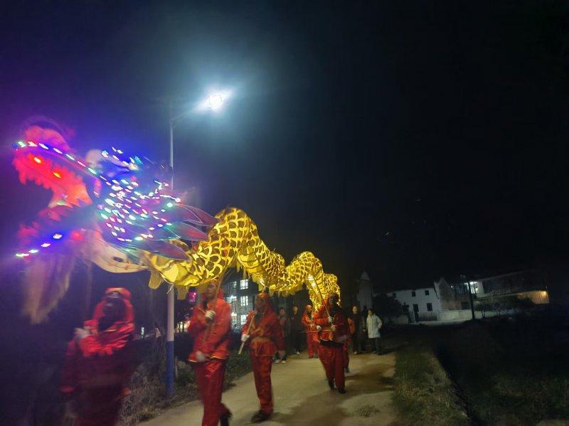 锣鼓铿锵辞旧岁,金龙腾跃贺新春。大年初二晚,黟县柯村镇翠林村灯火通明,在“桃花源里过大年”的喜庆氛围中,村民自发组建的舞龙队伍如期登场,以传承百年的民俗盛宴,点亮乡村新春夜,为八方宾朋送上满满年味与美好祝福。