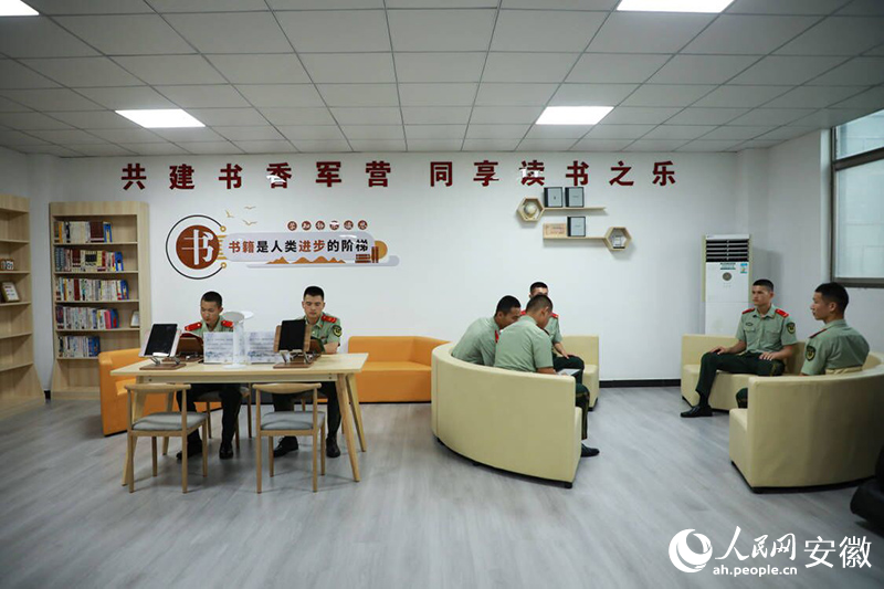 全椒中队的阅读室,武警官兵们正在学习交流。人民网记者 陶涛摄