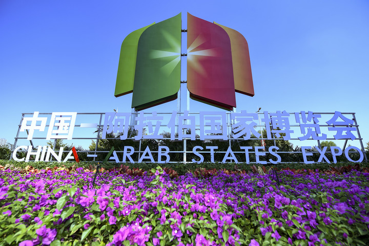 这是9月21日在宁夏银川市拍摄的第六届中国—阿拉伯国家博览会开幕式会场外景。新华社记者 冯开华 摄