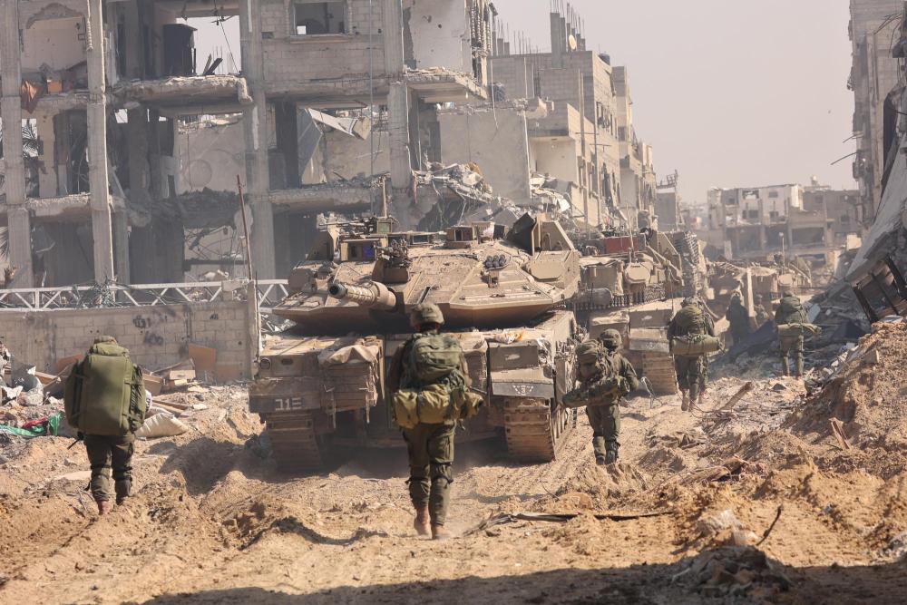 2月28日,以军部队在加沙地带南部城市汗尤尼斯展开军事行动。新华社发(吉尔·科恩·马根摄)