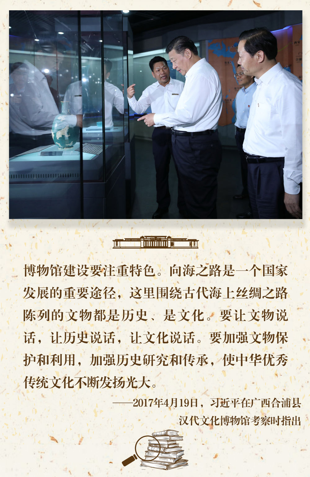 “一个博物馆就是一所大学校”。长期以来,习近平总书记十分关心博物馆事业发展,多次在不同场合对发挥好博物馆相关功能提出要求。