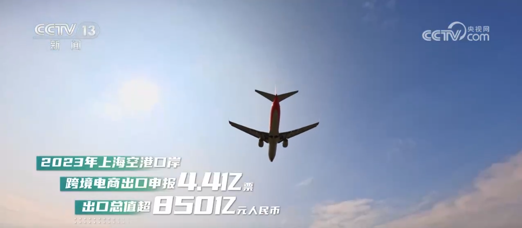 2023年,上海空港口岸跨境电商出口申报4.4亿票,出口总值超850亿元人民币。