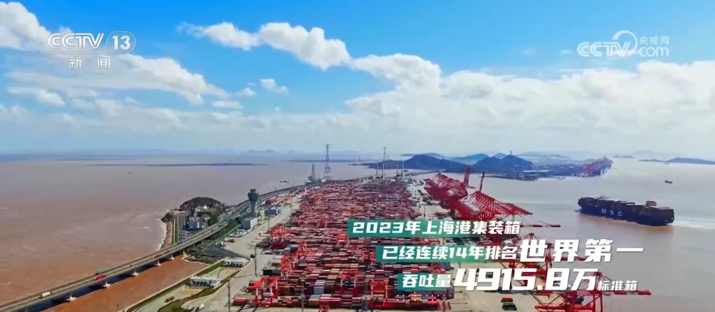 2023年,上海港集装箱已经连续14年排名世界第一,吞吐量4915.8万标准箱。