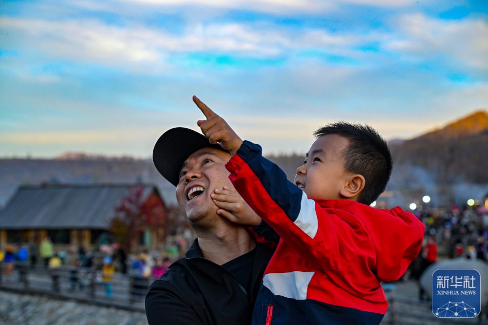 10月2日,游客在新疆阿勒泰禾木村游玩。新华社记者 陈朔 摄