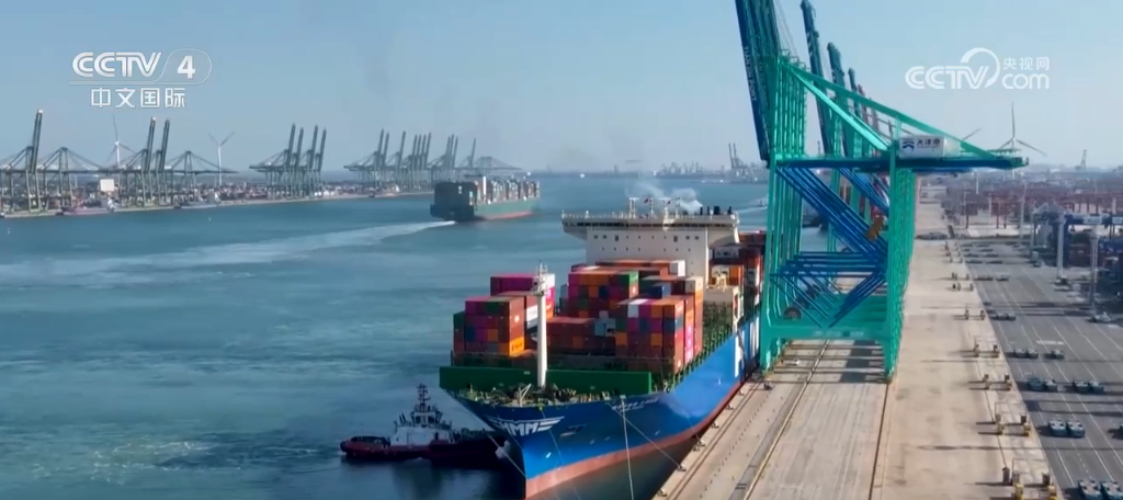 央视网消息:天津港是中国重要的现代化综合性港口,连续多年跻身世界港口前十强。2019年以来,天津港依托5G、AI等前沿科技解锁新质生产力,建成了全球首个智慧零碳码头,也为更好服务京津冀地区发展和共建“一带一路”注入新动能。《中国新地标》让我们跟随记者一起走进天津港北疆港区C段智能化集装箱码头。