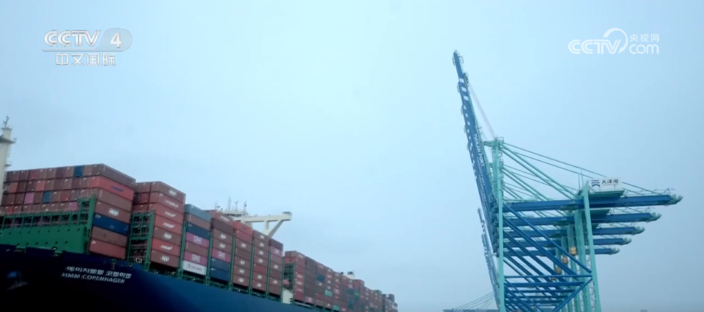 新技术、新模式让码头解锁了新质生产力,而装卸和运输只是货物进出口的一个环节。天津港还和海关搭建起了智慧关港系统,整合了往来天津港的23000辆左右的集装箱卡车和大概27000位司机,用数字化技术让每个集装箱的动态信息都能实时共享,进口效率提升了17%以上,出口效率更是提升了46%以上。也许有人会说码头的数字化和对算力需求的不断提升会导致能源消耗激增,造成环境污染。别担心,这里的岸桥、场桥、集装箱运输车等传统的“碳排放大户”都被安上了“绿色心脏”,整个码头作业全部使用电能,实现了零碳排放,每年减少的7.5万吨左右的碳排放,相当于植树21万棵。那么随之而来的巨大用电量又是从哪来的呢?在码头上,记者看到多台风机叶片正在稳定运转,源源不断地为码头带来清洁能源,让这里成为了全球首个智慧零碳码头,创新优化的工艺方案也为传统集装箱码头转型升级提供了“天津样板”。