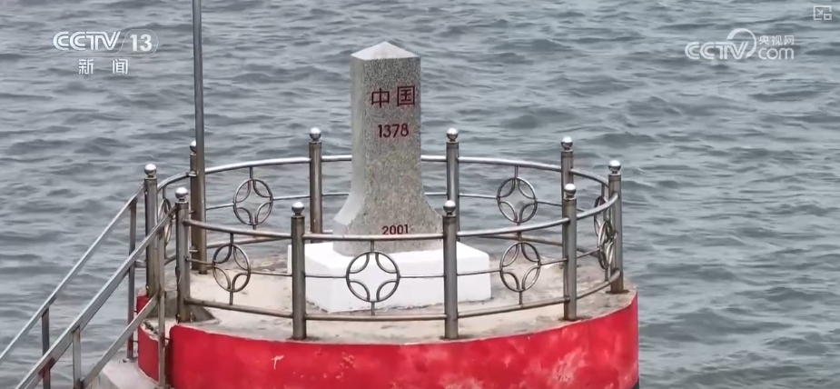 在中国的境内仅有5块海上界碑,就是1374号界碑到1378号界碑。这个位置是1377号海上界碑,不远处彩色的那块是1378号界碑,这两块界碑意味着中国西南端最远的两块界碑,也意味着陆地的终点和海洋的起点。