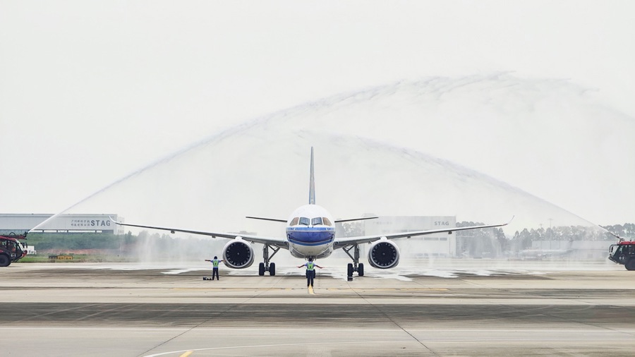 2015年11月2日,我国首款按照最新国际适航标准研制的干线民用飞机——C919大型客机首架机在上海浦东基地正式总装下线。2017年5月5日,C919在上海浦东国际机场成功实现首飞。经过3年6架飞机的试飞工作,2020年11月27日,中国民航上海航空器适航审定中心签发C919项目首个型号检查核准书(TIA),C919进入民航管理局审定试飞阶段。2022年9月29日,C919获得民航管理局签发的民用航空器型号合格证,获得了实现商业化运营的重要资质。这是中国大型民用飞机产业发展史上的一个里程碑,意味着我国初步掌握了大飞机研制规律、研制方法和关键核心技术,初步奠定了长远发展所需的人才、技术、管理等能力基础,初步带动了相关基础学科、航空工业和相关产业发展,实现了我国商用大飞机从无到有的历史性跨越。这是改革开放以来具有标志性意义的重大科技工程成就,具有重大历史和现实意义。