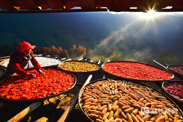 数百年来村民们在屋檐下、平台上用竹匾晾晒丰收的作物,称为晒秋。这里的“秋”指丰收的农作物,晒秋也并不局限于秋天。春晒竹笋,夏晒茄子豆角,秋晒辣椒玉米,冬晒腊肉豆腐。一年四季,当地人充分利用自然阳光的馈赠,将农耕文化的智慧融于日常细微。