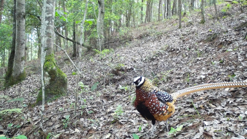 在贵州麻阳河国家级自然保护区,红外相机拍摄到的国家一级重点保护野生动物白冠长尾雉(贵州省林业局供图)