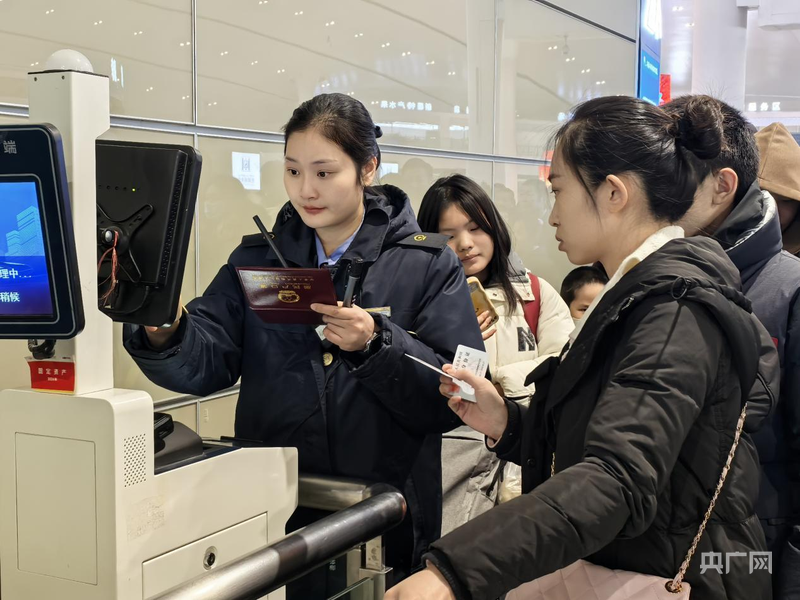 工作人员在为乘客检票 (央广网记者 丁安 摄)