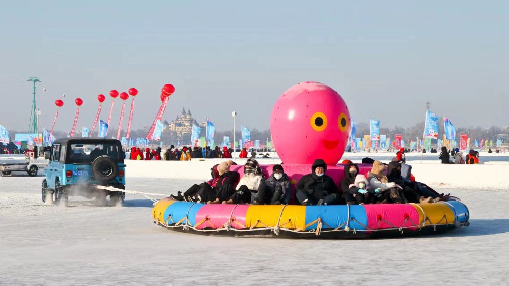 巨大的松花江面 给了哈尔滨人 尽情享受冰情雪趣的场地 无论是“冰雪辽宁舰” 还是随处可见的超大雪人 都让人觉得“根本玩不完”