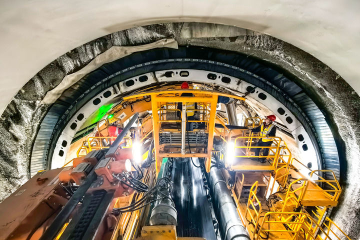??这是2025年1月5日拍摄的引江补汉工程首台双护盾硬岩掘进机“江汉平安号”掘进施工现场。新华社记者 肖艺九 摄