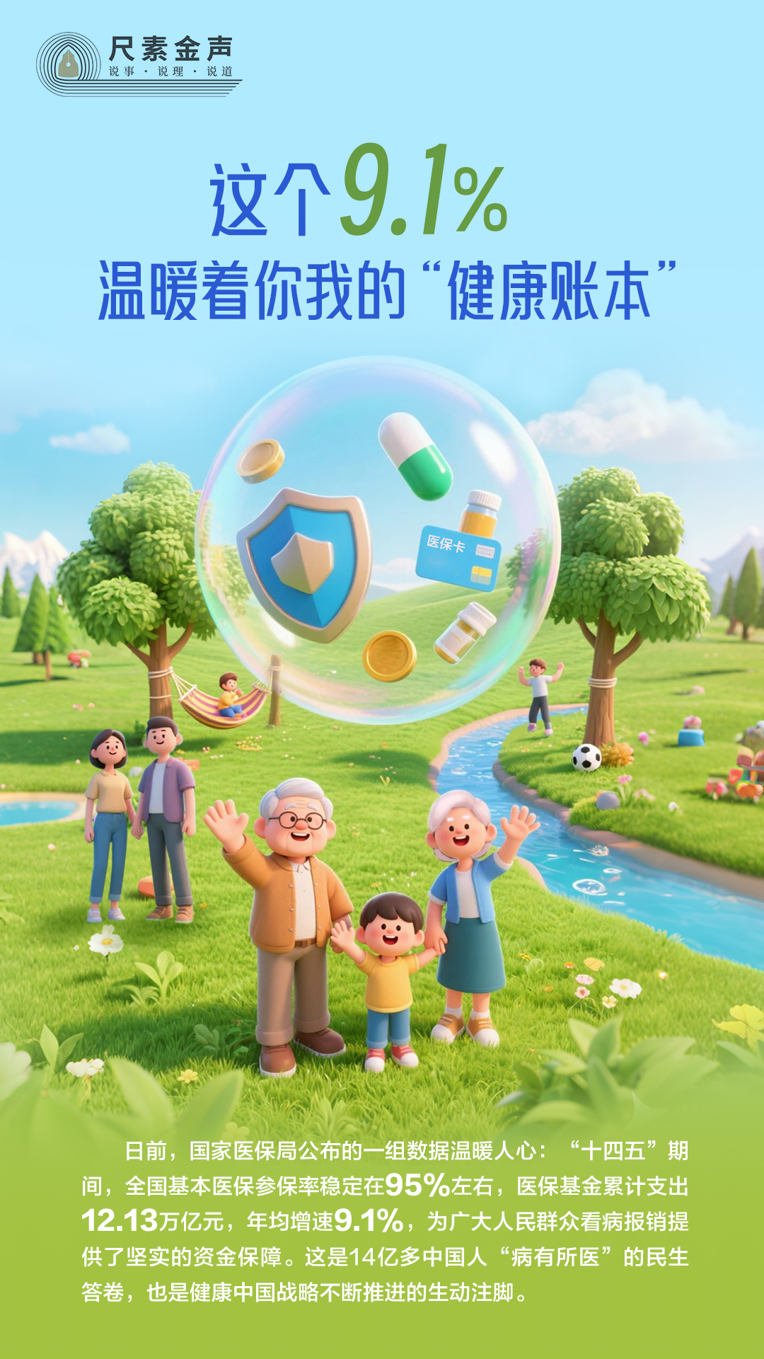日前,国家医保局公布的一组数据温暖人心:“十四五”期间,全国基本医保参保率稳定在95%左右,医保基金累计支出12.13万亿元,年均增速9.1%,为广大人民群众看病报销提供了坚实的资金保障。这是14亿多中国人“病有所医”的民生答卷,也是健康中国战略不断推进的生动注脚。