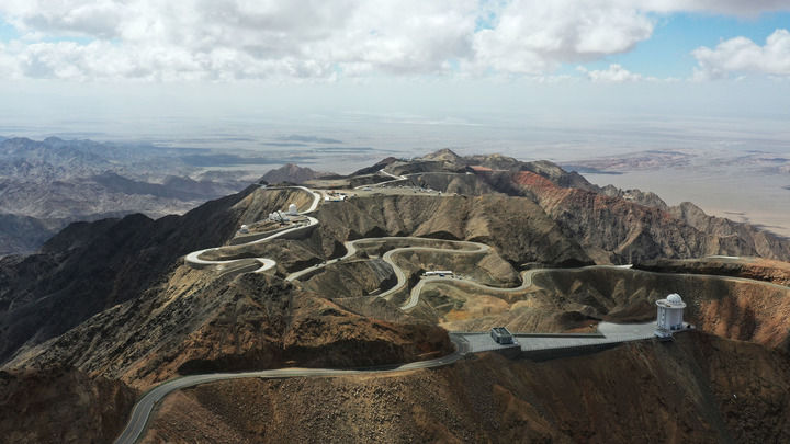 从空中俯瞰赛什腾山,蜿蜒的盘山公路如同一条飘带,串联起各个平台上的望远镜。海拔4200米的赛什腾山C平台上,矗立着由中国科学技术大学与中国科学院紫金山天文台共建的墨子巡天望远镜。墨子巡天望远镜总设计师孔旭介绍,作为目前北半球光学时域巡天能力最强的设备,“墨子”拥有一批硬核关键技术,每三晚可巡测整个北天球一次。