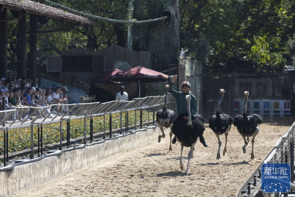 ↑ 10月6日,人们在上海野生动物园观看奔跑中的鸵鸟。新华社记者 王翔 摄