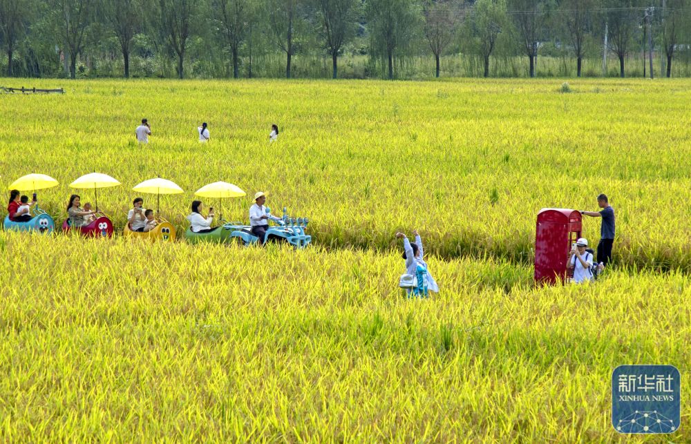 ↑ 10月5日,游客在湖北省恩施市白果乡“塘里堂外”农文旅田园综合体游览。新华社发(谭华摄)