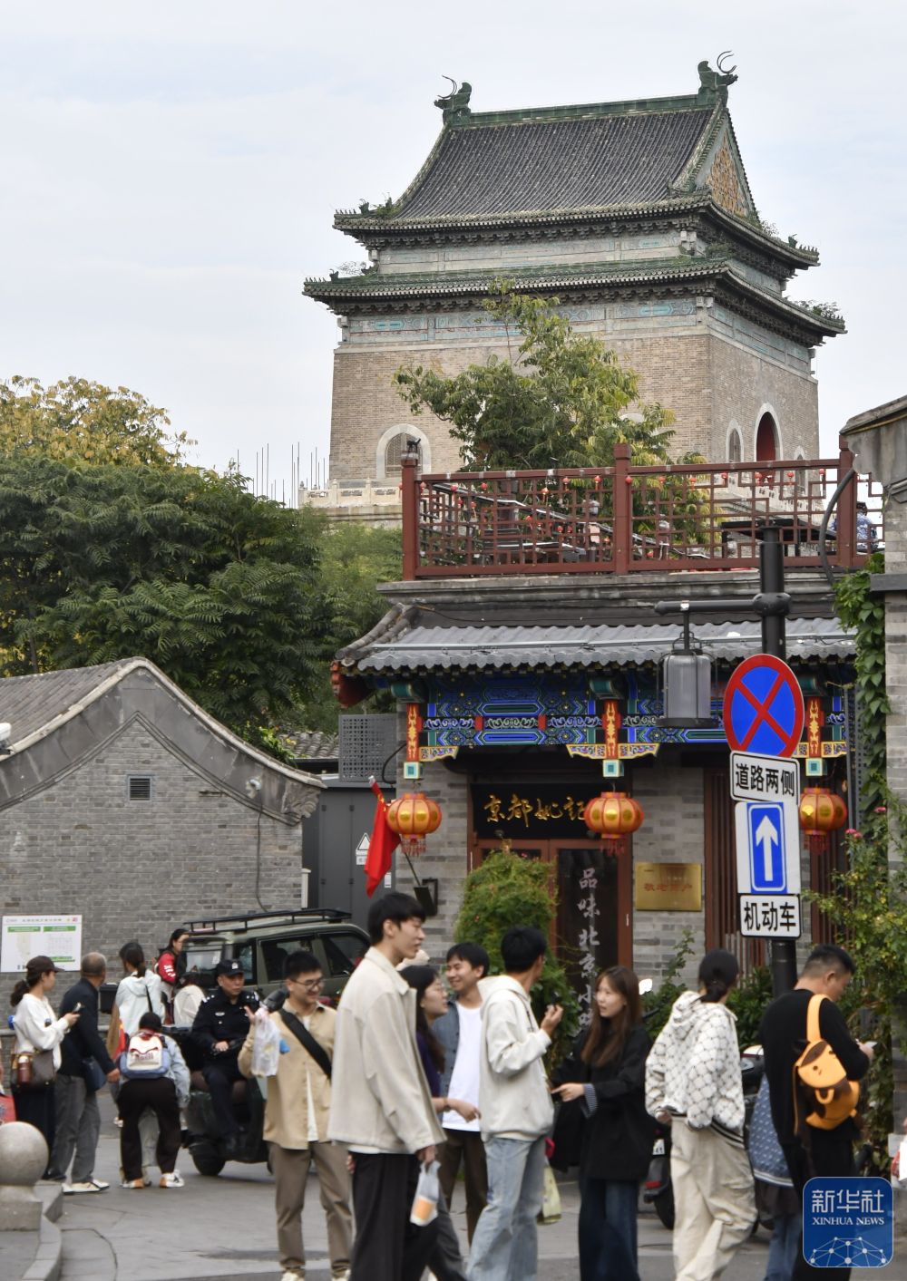 ↑ 10月6日,游客游览北京钟鼓楼附近的小街巷。新华社记者 李欣 摄