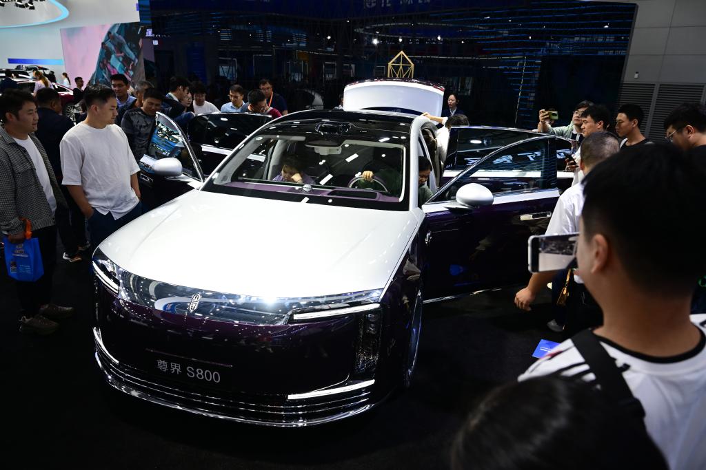 ??9月20日,观众在2025世界制造业大会上参观体验一款新能源汽车。新华社记者 周牧 摄
