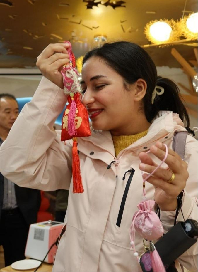 俄罗斯网红博主展示自己制作的中草药香囊 摄影 赵博