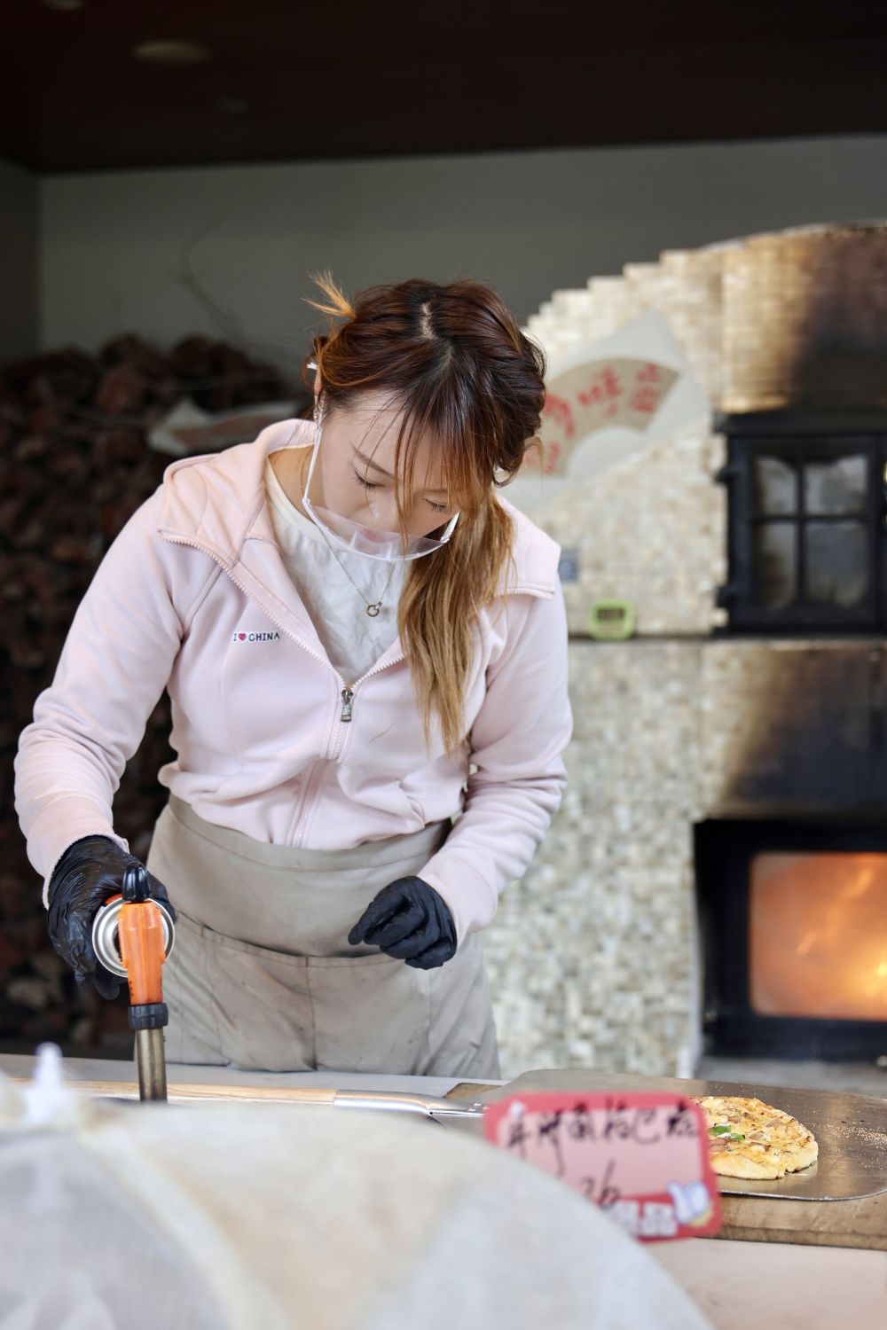 2025年10月3日,在安徽省合肥市庐江县万山镇一家窑炉面包店内,店员在制作披萨。新华社发(凤俊 摄)