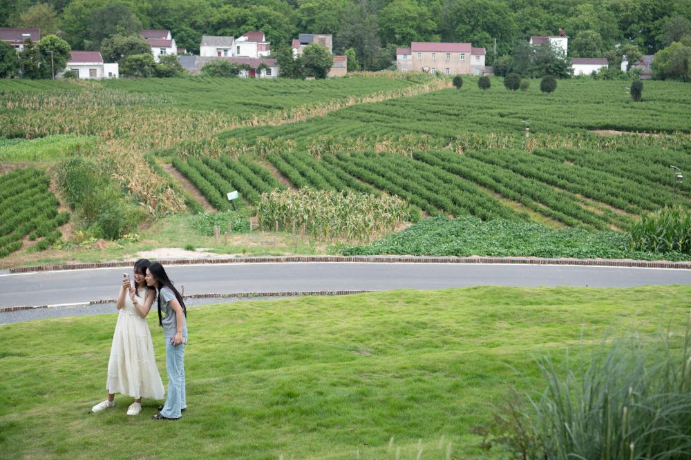2025年7月26日,游客在安徽省合肥市庐江县长冲村拍照游玩。新华社记者 张端 摄