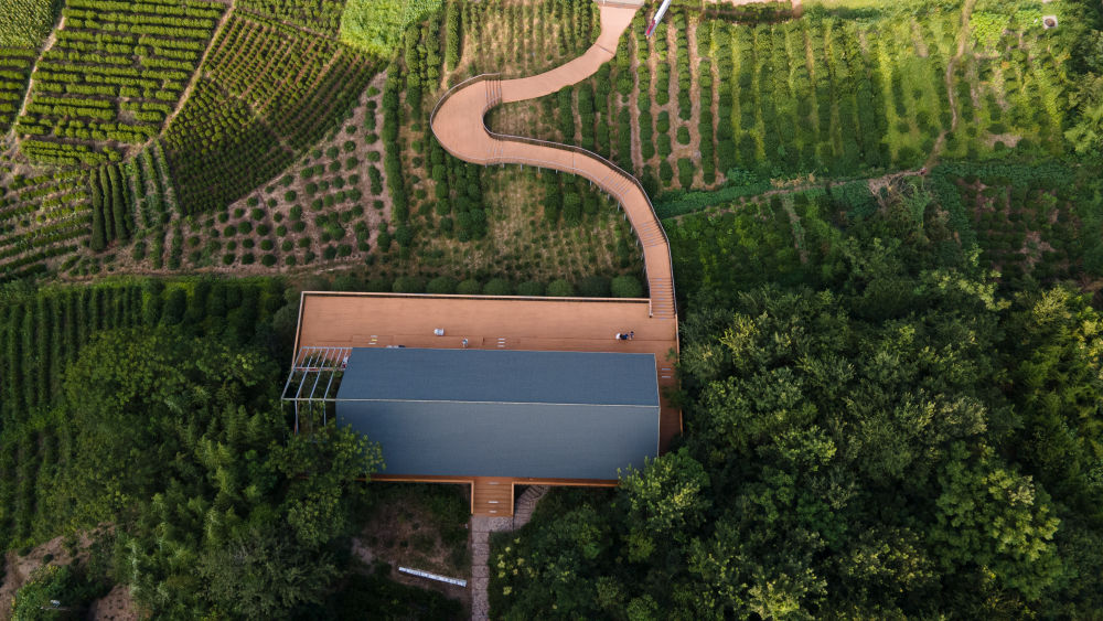 这是位于安徽省合肥市庐江县长冲村的一处建在茶园之上的咖啡馆(2025年7月26日摄,无人机照片)。新华社记者 张端 摄