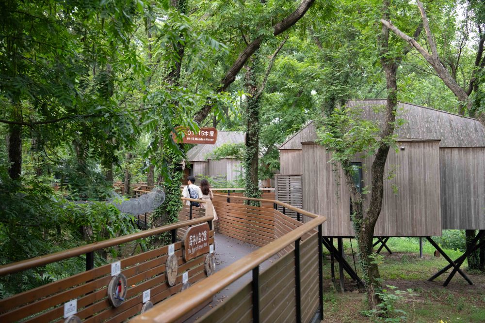 这是位于安徽省合肥市庐江县长冲村的一处供游客休闲及住宿的森林木屋(2025年7月26日摄)。新华社记者 张端 摄
