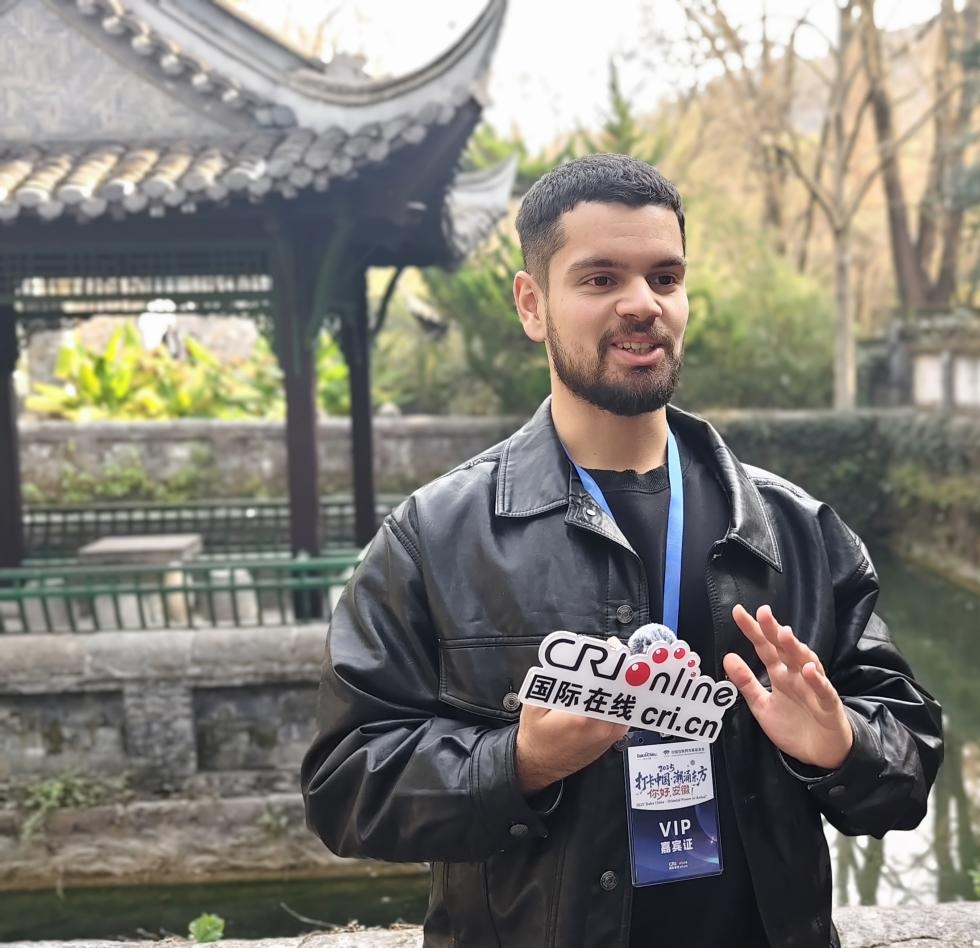 在老胡开文墨厂内,两百余年历史的徽墨制作技艺令人惊叹,中埃博主蘸着徽墨用中阿双语写下“你好,中国”。手握亲手制作的徽墨,第一次提笔感受中国书法的埃及博主说:“埃及也有书法,中国书法用墨以黑色为主,埃及书法则有金色、红色等色彩。”在笔墨间感受文化的魅力,在中外书法差异中找到古老文明的共鸣,埃及博主表示:“我希望未来能有更多机会,参与到中埃两国的文化交流中。”