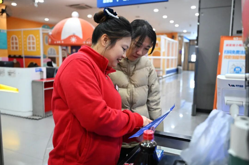 合肥经开区某购物中心内,店员为顾客介绍“预付宝”。图源:安徽日报