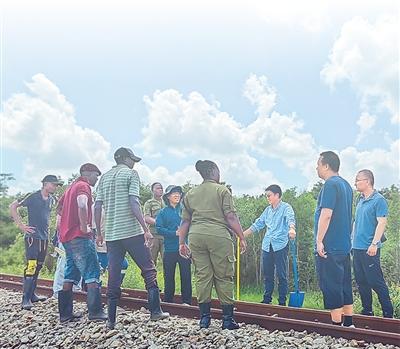 2023年,中外方工作人员在坦赞铁路现场考察设备。