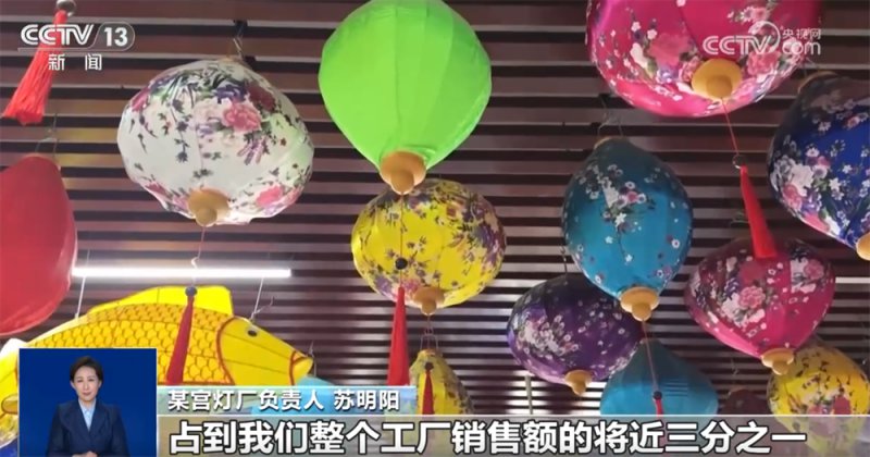 某宫灯厂负责人 苏明阳:现在一天直播4小时—5小时,到年底我们一天开播将近16个小时。在线上卖,占到我们整个工厂销售额的将近三分之一。