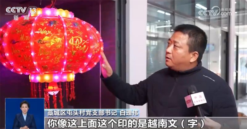 藁城区屯头村党支部书记 白理伟:通过宫灯博览会,对接了市场、增加了客户,你像这个上面印的是越南文字,一些吉祥话,这是近两年新开发的产品。