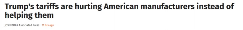 而政策公告频繁、反复调整、豁免条款多变,再加上绕开国会推行关税的做法,更让中小制造企业难以制定长期规划。美联社以艾伦的公司进口自德国的柴油发动机为例称,若在美国本土生产这些机器,需投入2000万美元,这在关税政策前景不明的情况下无疑是巨大的投资风险。