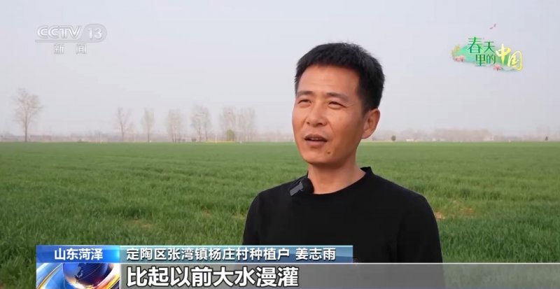 定陶区张湾镇杨庄村种植户 姜志雨:今年我这六百亩地,比起以前大水漫灌,能省下三四成的水,肥料跟着水直接送到麦子根部,用肥量也能节省三成左右。一亩地能增产三百斤,今年夏粮丰收,心里更有底,更有指望了。