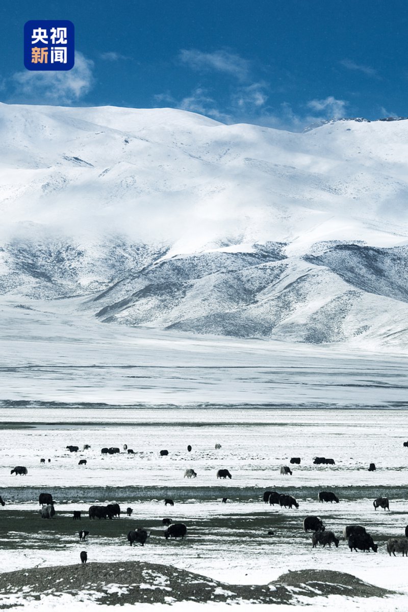 冬天,黄沙披上银装,高低起伏的沙脊与洁白的雪交织出独特的纹理。