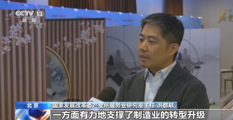 国家发展改革委产业所服务业研究室主任 洪群联:现代服务业包括科技、信息、商务这些生产性服务业增长很强劲,它们都同制造业深度融合,一方面有力支撑了制造业的转型升级,另一方面极大改善了整个产业结构,然后对整个产业的提质增效起到很大的支撑作用。