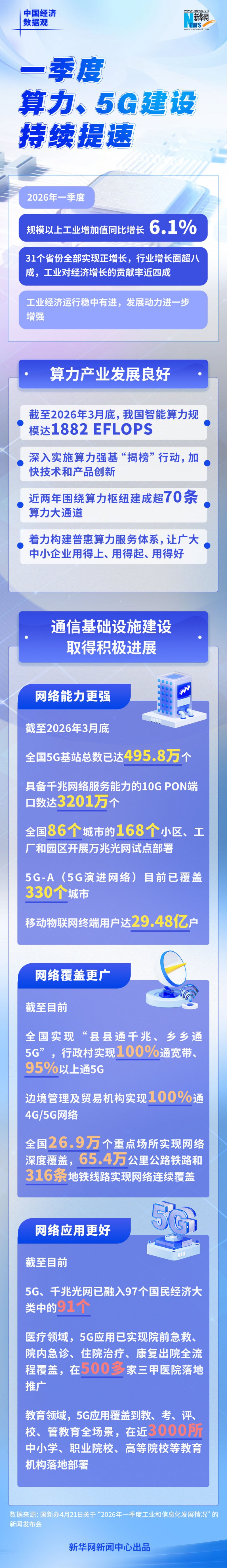 中国经济数据观丨一季度算力、5G建设持续提速