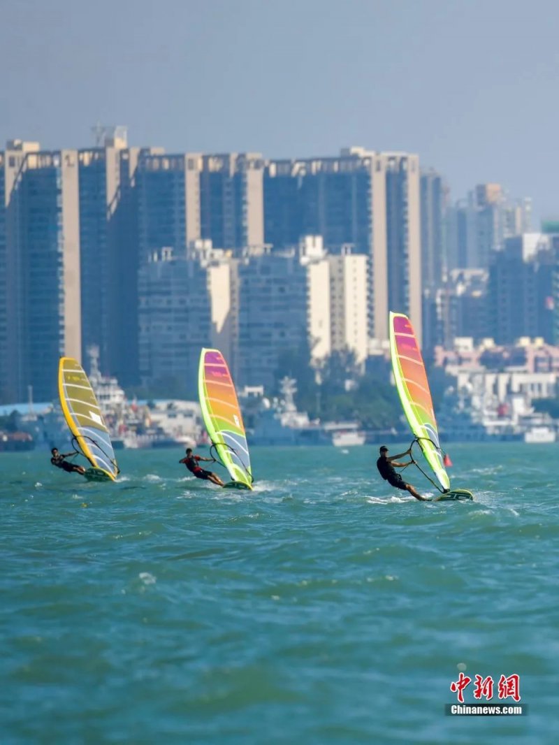海口湾海域上的帆板比赛。骆云飞 摄(资料图)