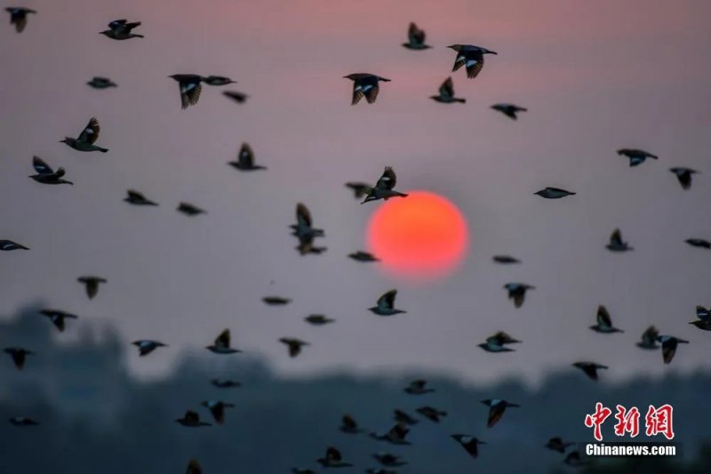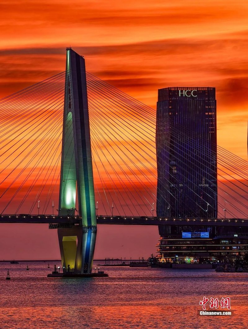 海口湾红霞漫天美如画。骆云飞 摄(资料图)