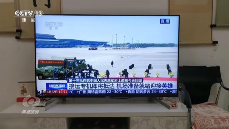 正在家里观看电视直播的是97岁高龄的中国人民志愿军老战士沈正林,战友们魂归故里,是她一生的心愿。