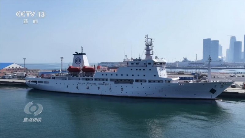在我国首艘专用教学实习船“育鲲”轮上,大连海事大学的师生们在甲板上庄严宣誓,以青春之名立强国之志,向归来的志愿军英雄们致敬。