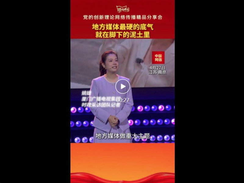 “我们脚下每寸土地都是富矿,唯有俯身挖掘、沉浸其中、抽丝剥茧,方能寻得触动人心的瞬间!”4月27日,2026“理响中国”党的创新理论网络传播精品分享会在江苏南京举办。中央媒体、地方媒体、专家学者、网络名人和基层理论工作者代表等理论传播“高手”齐聚一堂,共话党的创新理论网络传播。