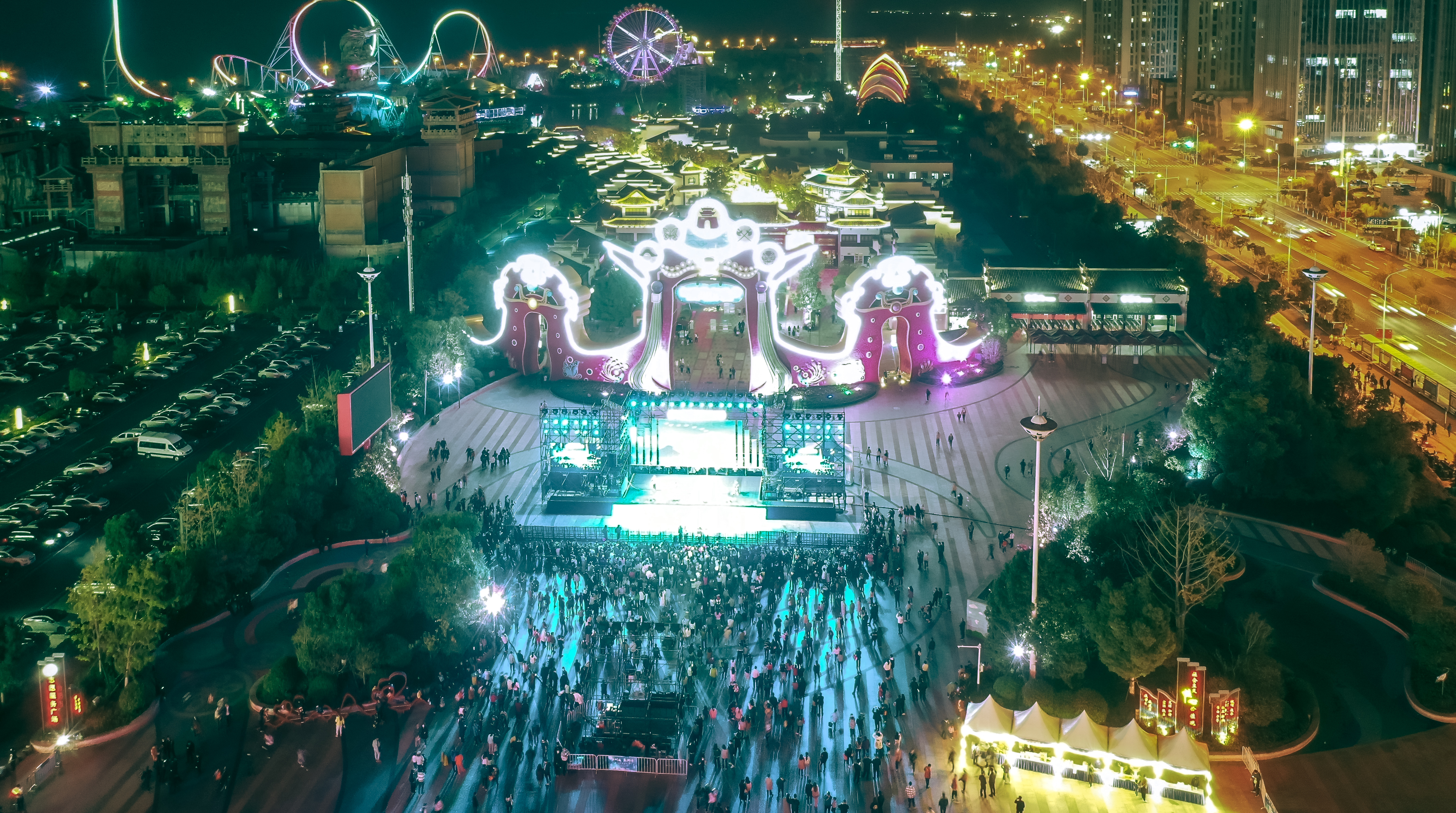 活动举办地包河区融创文旅城,是合肥最繁华的网红夜经济区域之一,在歌舞的激情里,在灯光的映照下,一幕幕盛世美景更让人感叹“活力之城”的魅力。